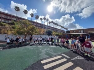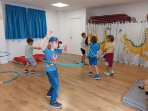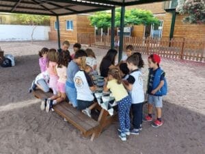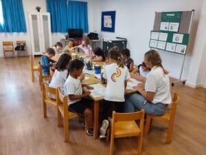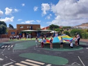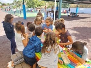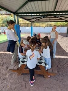 El viernes, 02 de junio de 2023, se llevó a cabo en el patio de Infantil el segundo día de proyecto para los niños y niñas de Preescolar y los alumnos y alumnas de Primaria. La actividad comenzó con una alegre canción que los niños entonaron con gran entusiasmo. La música y los movimientos que la acompañaban fueron un excelente comienzo para los juegos que seguían. Hubo muchas actividades diferentes que los niños pudieron disfrutar. Bailaron con aros de hula-hula y pudieron dar rienda suelta a su creatividad pintando y creando pulseras. Con cuentas de colores e hilos, los niños crearon hermosas joyas que lucían orgullosos en sus muñecas. Por supuesto, tampoco faltó el deporte. Los niños jugaron emocionados al fútbol y mostraron sus habilidades en el campo. Fue un verdadero placer para todos los participantes. Tanto los niños de Preescolar como los alumnos de Primaria disfrutaron al máximo del tiempo compartido. Fue un momento maravilloso en el que se despertó la emoción de los futuros alumnos y alumnas de Primaria por los años escolares venideros.