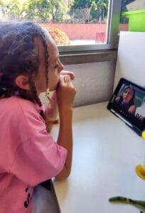 Ahora ya estamos en el cuarto curso y las fichas con los datos de nuestros amigos siguen decorando el aula (y nuestras fichas y fotos siguen colgadas en Cuxhaven en la clase de los osos polares en el colegio Abendrothschule (https://abendrothschule.de). Al finalizar la amistad por correspondencia de los últimos dos años nos reunimos por video conferencia para conocer en directo a nuestra clase asociada de Alemania. Por fin pudimos hablar directamente con nuestros amigos de correspondencia.
