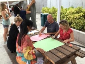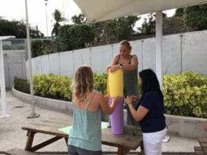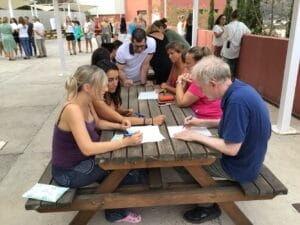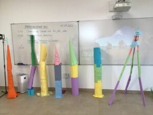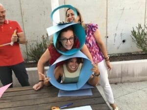 Para comenzar el día, los profesores se dividieron en equipos de arquitectos y obreros y tenían la tarea de construir juntos una torre de papel en 15 minutos. Los arquitectos planificaron y los obreros llevaron a cabo la construcción. Las discusiones y preguntas solo podían tener lugar en la línea divisoria entre ambos grupos.