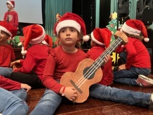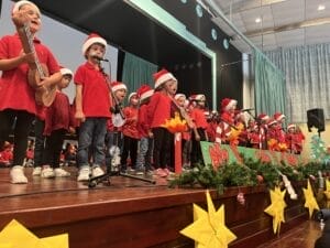 Además del villancico de los niños/as de Infantil, el mambo navideño de los niños/as de Preescolar y el villancico en español de los niños/as de habla alemana, los representantes de padres y madres y algunos miembros del personal en prácticas, también interpretaron su tradicional baile navideño. Todos los grupos recibieron un aplauso atronador y no pudo faltar alguna lágrima derramada por la emoción.