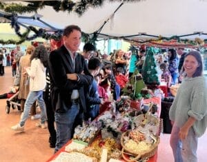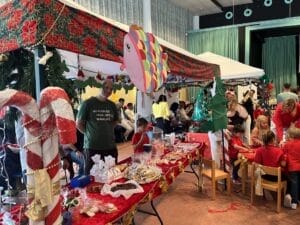 El pasado sábado tuvo lugar en el recinto escolar del Colegio Alemán de Las Palmas el tradicional mercadillo navideño de Infantil y Preescolar. Lamentablemente, no pudo celebrarse en el patio, como es habitual, sino que tuvo que trasladarse espontáneamente al auditorio debido a las condiciones meteorológicas. Muchos voluntarios ayudaron a transformar el auditorio en una hora en un precioso mercadillo navideño con puestos decorados con mucho cariño. El olor a Navidad y a gofres recién hechos estaba por todas partes.