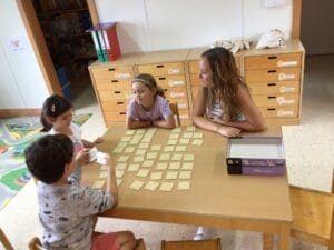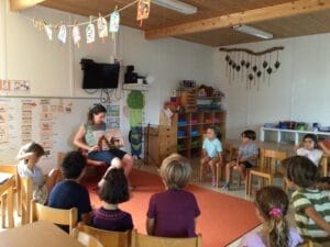 Es especialmente satisfactorio que los/as niños/as ya hayan hecho sus primeros amigos en la segunda semana. Estos contactos sociales desempeñan un papel fundamental para que nuestros niños y niñas se sientan rápidamente como en casa y disfruten de su estancia con nosotros. Los/as niños/as también participaron activamente en la asamblea matutina desde el principio: disfrutaron cantando, participando e involucrándose en su nueva comunidad.