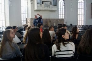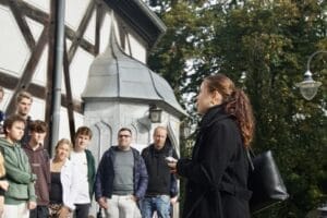 De vuelta a Krzyżowa, visitamos el Kapellenberg, dónde se encuentran las tumbas de la familia Moltke. Es tradición que los alumnos cada año limpien estas tumbas durante su estancia. Con motivo del 30 aniversario del proyecto, también tuvimos la gran suerte de poder entrevistar a uno de los testigos, es decir, a uno de los descendientes, el hijo del combatiente de la resistencia, lo cual fue una experiencia impresionante.