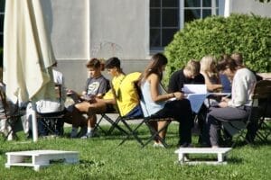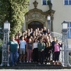 Al día siguiente por la mañana, partimos en guagua hacia Polonia junto con los alumnos del colegio de Kronberg. Al llegar a Dresden, se unieron los compañeros de la República Checa. Al llegar a Krzyżowa nos quedamos asombrados de la bella y abundante naturaleza que rodea la finca de Kreisau/Krzyżowa. Al día siguiente llegaron los compañeros de Polonia y juntos conocimos la historia de Kreisau y la del Círculo de Kreisau, un grupo de resistencia que se reunió en este lugar tres veces durante la Segunda Guerra Mundial para desarrollar ideas sobre el futuro alemán después de Hitler y sin Hitler.