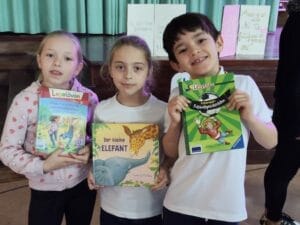 El miércoles 10 de abril de 2025 llegó, por fin, uno de los momentos más esperados: los niños de Primaria se reunieron en el auditorio para leer ante sus compañeros. Durante las semanas previas, se habían estado preparando con ilusión en sus clases de alemán para este día tan especial. Cada participante eligió un libro y leyó un fragmento durante un tiempo determinado. En cuarto, además, se planteó un reto adicional: leer en voz alta un texto desconocido. Los niños superaron esta prueba con gran soltura.