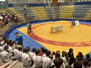 Fue una mañana muy divertida, ya que nos vestimos con ropa de luchadores y pudimos practicar el deporte con nuestros compañeros y alumnos de otros colegios que también estaban invitados al taller.