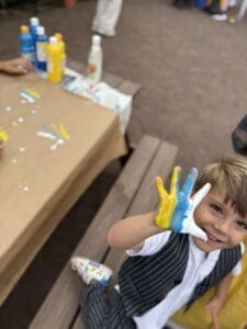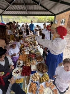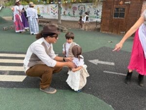 Todos los niños y niñas, el equipo de Infantil y Preescolar y muchas familias vinieron vestidos con trajes tradicionales canarios, creando un ambiente festivo y auténtico. El acto comenzó con una calurosa bienvenida y la canción canaria, que inmediatamente arrancó una sonrisa a todos/as los/as asistentes.