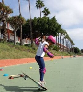 In der AG Skaten lernen die SchülerInnen der 2. bis 4. Klasse sich und anderen zu vertrauen und sie stärken mit viel Mut ihr Selbstbewusstsein. Außerdem verlieren sie Ängste  und haben viel Spaß in einer altersgemischten, neuen Gruppe.