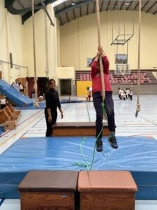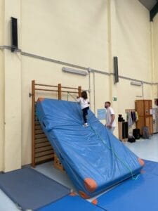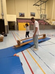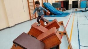 Die beiden Vorschulgruppen Pferde & Löwen haben zusammen mit unseren Praktikant*innen Sarah und Valentin ein Bewegungsspiel begleitet. Der Bewegungsparkour war einem Dschungel nachempfunden. Die verschiedenen Hindernisse stellten beispielsweise einen Wasserfall, eine Brücke oder eine Liane dar. Am Ende des Parkours hatten die Vorschulkinder Herzen gesammelt, um das Klassenmaskottchen aus dem Dschungel zu befreien, dabei zeigten sie großes Interesse und Begeisterung.