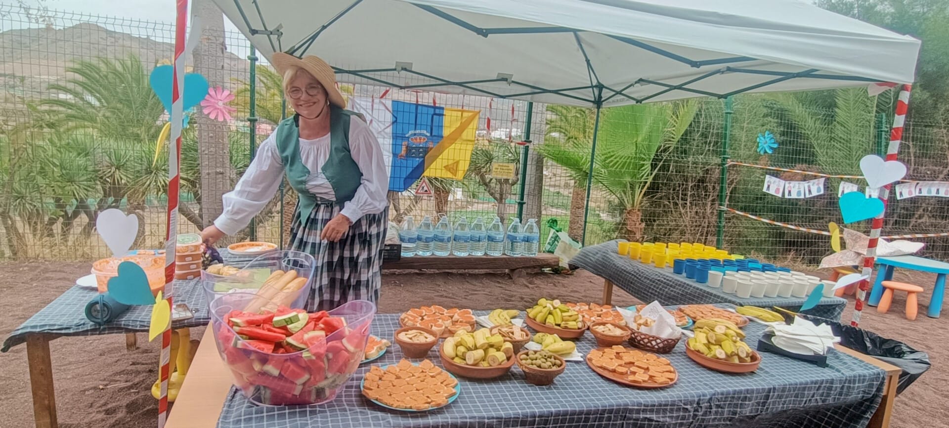 Zudem wurden von den Pädagoginnen und Praktikantinnen Stationen mit verschiedenen Aktivitäten entwickelt, die den Kindern die kanarische Kultur spielerisch näherbrachte. Zwischendurch wurde natürlich für Stärkung gesorgt: typisch kulinarisches Essen wie hausgemachtes Mojo, Chorizo aus Teror und Bananen von der Insel durften an einem solchen Tag selbstverständlich nicht fehlen.