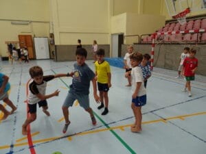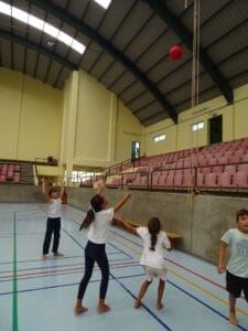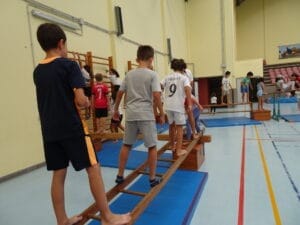 Ab 11.40Uhr durften alle Kinder der Grundschule in die Halle und auf den Sportplatz, um dort gemeinsam zu spielen und zu feiern. Als besondere Attraktion wurde am Vortag bereits eine Bewegungsbaustelle in der Halle aufgebaut, die alle Kinder abwechselnd nutzen konnten.
