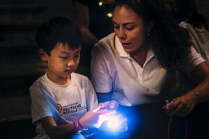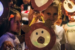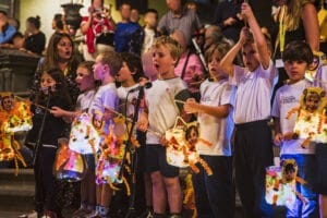 Die Atmosphäre war geprägt von Vorfreude und festlicher Stimmung, die durch die leuchtenden, selbstgebastelten Laternen der Kinder noch verstärkt wurde. Wie jedes Jahr hatten die Kinder des Kindergartens, der Vorschule und der Grundschule liebevoll Laternen gestaltet, die in verschiedenen Farben und Formen die Straßen erhellten. Zu Beginn des Festes sangen die Kinder traditionelle Laternenlieder auf der Plaza de Santa Ana, begleitet von der Big Band der Sekundarstufe, deren festliche Musik eine besondere Atmosphäre schuf.