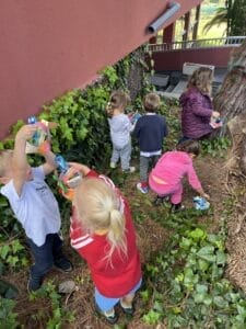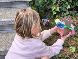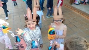 Am Donnerstag nahm der Osterhase die leeren Nester heimlich mit. Und am Freitag war die Aufregung dann groß: Der Osterhase hatte die prall gefüllten Nester heimlich zurückgebracht und überall auf dem Gelände versteckt – rund um die Kindergartengruppen, am Comedor und im Garten. Bei schönstem Frühlingswetter begaben sich die Kinder auf die Suche – mit strahlenden Augen und jeder Menge Entdeckerfreude. In den Nestern warteten süße Überraschungen, darunter natürlich auch ein Schokoosterhase.