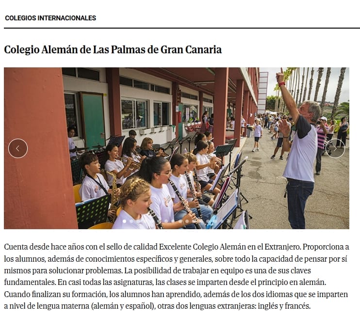 Wir sind stolz, mitteilen zu dürfen, dass wir bei unserer ersten Teilnahme am Ranking der besten Schulen Spaniens der Zeitung El Mundo hervorragend abgeschnitten haben. In der Kategorie „Internationale Schulen” wurde die DSLPA auf Anhieb zur achtbesten Schule Spaniens und zur besten Schule der Kanarischen Inseln gekürt.